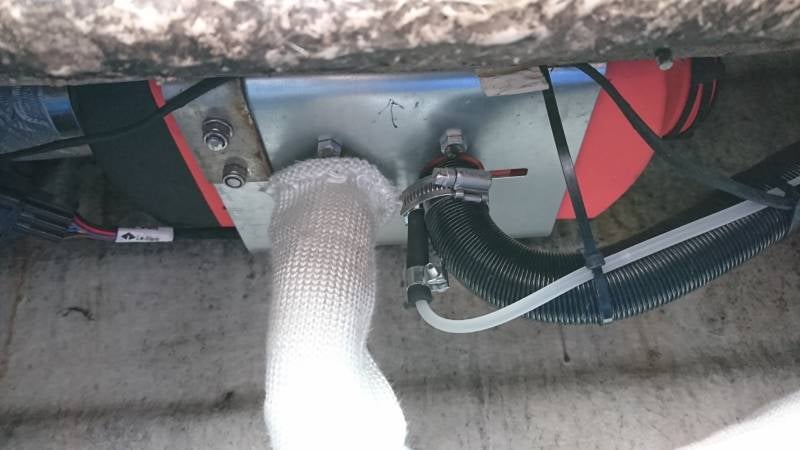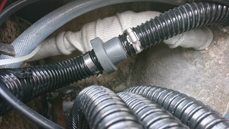 Op bovenstaande foto zie je de uitlaat. Hiervoor heb ik nog apart een dempertje en isolatiekous gekocht. Soort gebreide glasvezel, maar het isoleert geweldig!