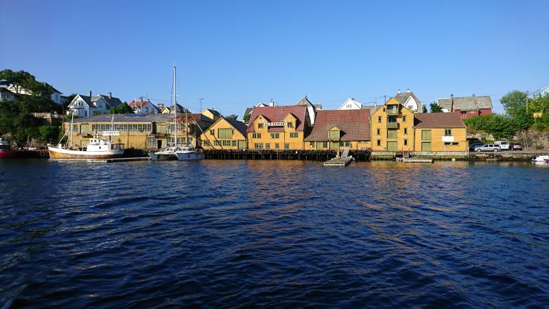 Haugesund is een havenstad met veel offshore industrie. Olie en gas, maar ook windmolens. Ik heb het geluk dat mijn boot niet zo hoog is (ongeveer 9,5 meter) dus ik kon binnendoor varen, langs oude pakhuizen, door een smal kanaal. Hier kon ik ook benzine tanken. (Bij bijna alle pompen langs het water in Noorwegen betaal je met plastic)