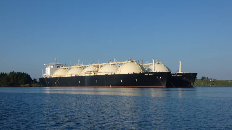 Achter het vikingeiland lagen twee grote LNG tankers voor anker, enorme schepen die vloeibaar gas vervoeren.