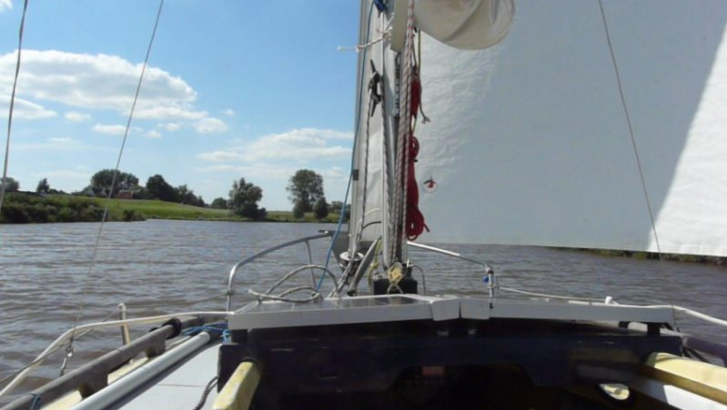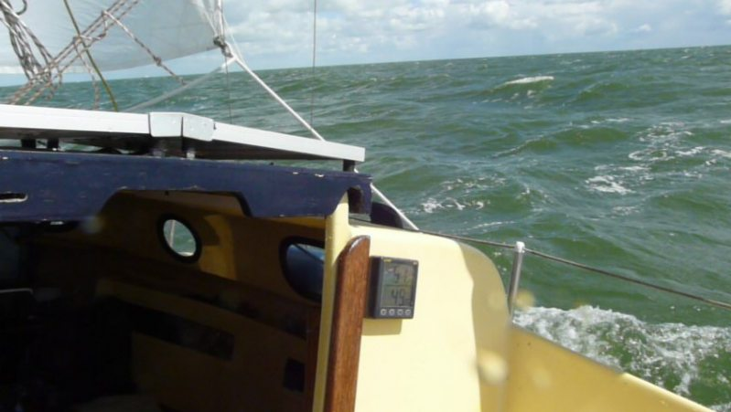 Halverwege viel de wind helemaal weg, dus moest de motor het maar doen. Een hoop herrie, maar anders werd het 2300 uur s´avonds, daar had ik niet zo´n zin in..