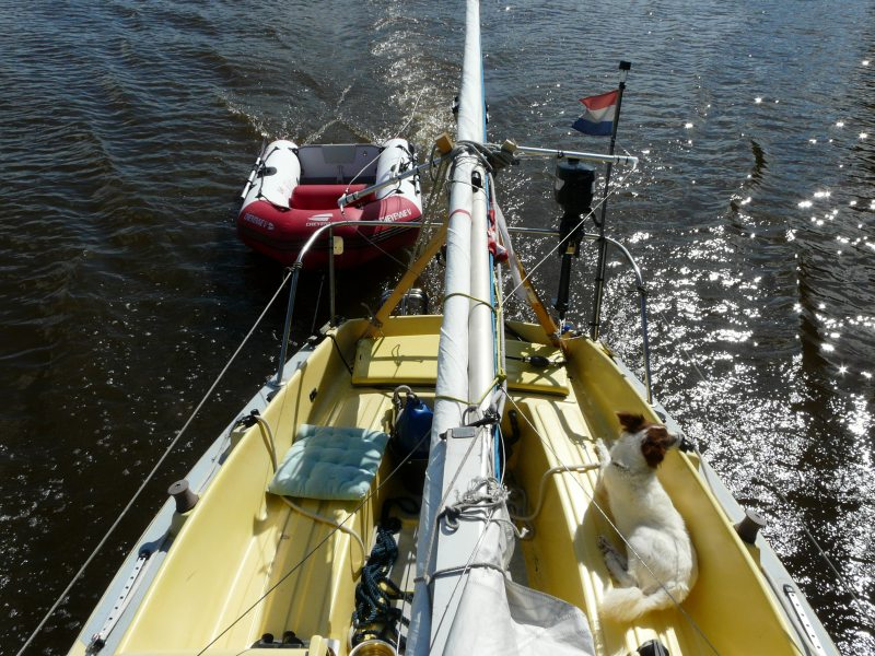 Dat gaat vrij makkelijk, gelukkig..Een nadeel van deze route is dus ook dat er een aardig stuk gemotord moet worden, tot het Lauwersmeer. Veel benzine kost dat met mijn motortje niet, hij is verbazend zuinig. half litertje per uur, half gas. Dan haal ik toch nog 4,5kn, alleen de herrie....(2 takt, luchtgekoeld)
