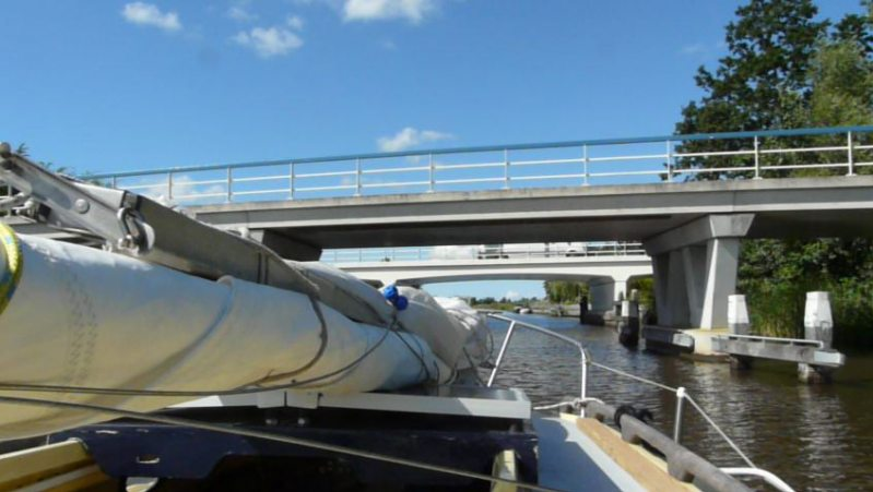 Ik kon kiezen, via de staande mast-route, (via Leeuwarden-Dokkum) of via het Bergummermeer en Kuikhornstervaart-Petsloot-Nije zwemmer naar het Lauwersmeer...De laatste route is een stuk sneller, maar... dan moet wel de mast plat...