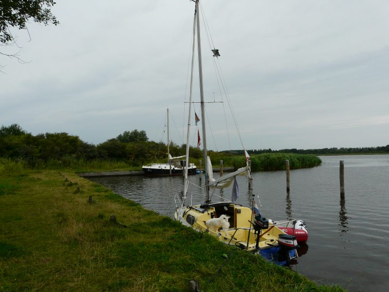 In Groningen een nieuwe voorstag laten maken,en kwam m´n vriendin aan boord, die ging nog een weekendje mee naar het Lauwersmeer. Een vriend van me is ook nog mee geweest, met een open zeilbootje. Weer op de motor het Reitdiep af, er stond geen zuchtje wind meer..