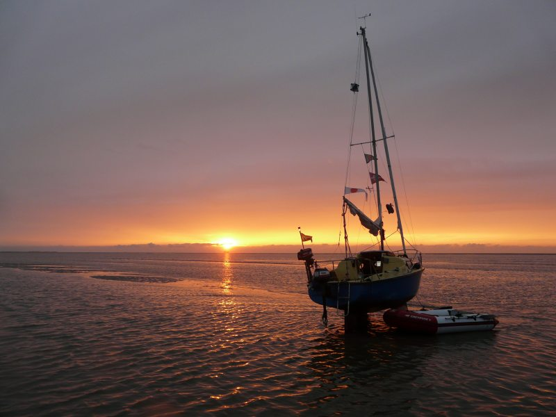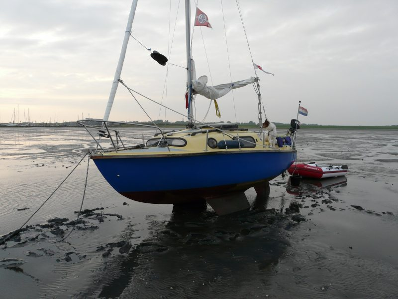 Nou was de plek om droog te vallen niet een keuze, ik liep er vast, boven op een zand bult. Rond middernacht was stond er weer voldoende water, en heb ik de boot in iets dieper water gelegd..